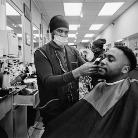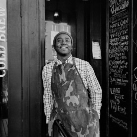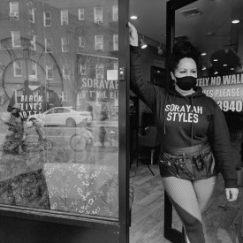 Last year, on March 4, 2021 FDC’s Economic Development Department walked around our neighborhood with representatives from NYCCHR and photographer Andre Wagner, to photograph, on film, some of our local Black Owned Businesses. Even amid COVID-19 and growing gentrification, Black business owners anchor their communities, even in the most difficult of times. These photos were included on a larger citywide campaign by the highlighting Black Owned Businesses across Brooklyn. In July 2021, The Photos were then printed and displayed on the windows of each featured business and in one larger exhibition at the Flatbush Food Coop.