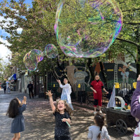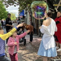 On Cortelyou Road, we saw a bubble show and hula hooping from Bindlestiff Cirkus. The bubbled were giant.
