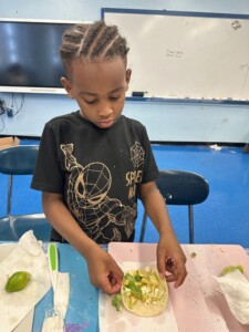 “I’ve been collaborating with Spoons Across America since 2017 when I first connected with founder James Grosso during my time as a group leader at Grand Street Settlement. This summer, I was thrilled to reconnect with him, and he generously provided all the necessary resources for free, including cooking equipment and kid-friendly tools. My role was to teach the classes and follow the provided recipes, making the experience both seamless and rewarding.” César Hernandez