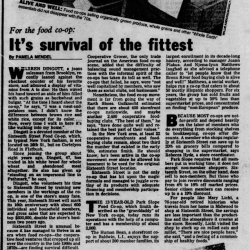 1415 Cortelyou RoadFlatbush Food Co-Op began operations in 1978 on East 16th Street, a dead end near the Avenue H station in Fiske Terrace. In 1985 it moved to 1318 Cortelyou Road and for a few years there, retained the name “16th Street Food Co-Op.” In 2008 it moved diagonally across the street to 1415 Cortelyou, replacing an Associated Supermarket that had once been a Bohack Supermarket in the 1950s.