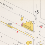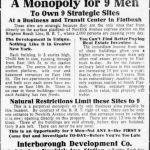 Newkirk Plaza was created in 1910 and owes its existence to the lack of structures along the path of the Brighton railroad between Foster and Newkirk Avenues at the turn of the 20th Century, aside from the Henry Bolte Hotel which faced the tracks at the southeast corner of Marlborough Road and Newkirk Avenue. The red numbers on the 1905 insurance map below indicate the present location of the three stores we’ve discussed. Note the wooden platform and not much else except the hotel.