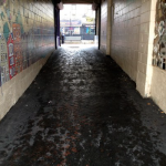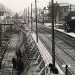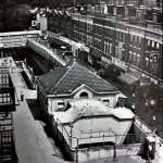Before the Brighton line was submerged as part of the Grade Crossing Elimination Project, memorialized in a plaque on the east wall of the Plaza station house, the railroad planned to add two tracks for express service and an express station in Flatbush south of Church Avenue. To do this it needed to add about 20 feet on each side of its existing 50-foot right of way. Cortelyou Road and Newkirk Avenue were the only alternatives considered. Cortelyou Road had a trolley that intersected with the railroad and an expanding commercial strip. Its merchants lobbied hard for the express, realizing the additional foot traffic it would produce. But too many buildings lined the tracks around Cortelyou, making expansion of the roadbed impracticable. And so an agreement was reached with the landowners surrounding the Brighton line’s two surface tracks at the Newkirk stop. The railroad secured an easement of 19.5 feet on each side to make room for two island platforms between the local and express tracks. In return, the railroad restored to the property owners the entire width of the easement by constructing concrete pavement at ground level to form a roof over the local tracks.